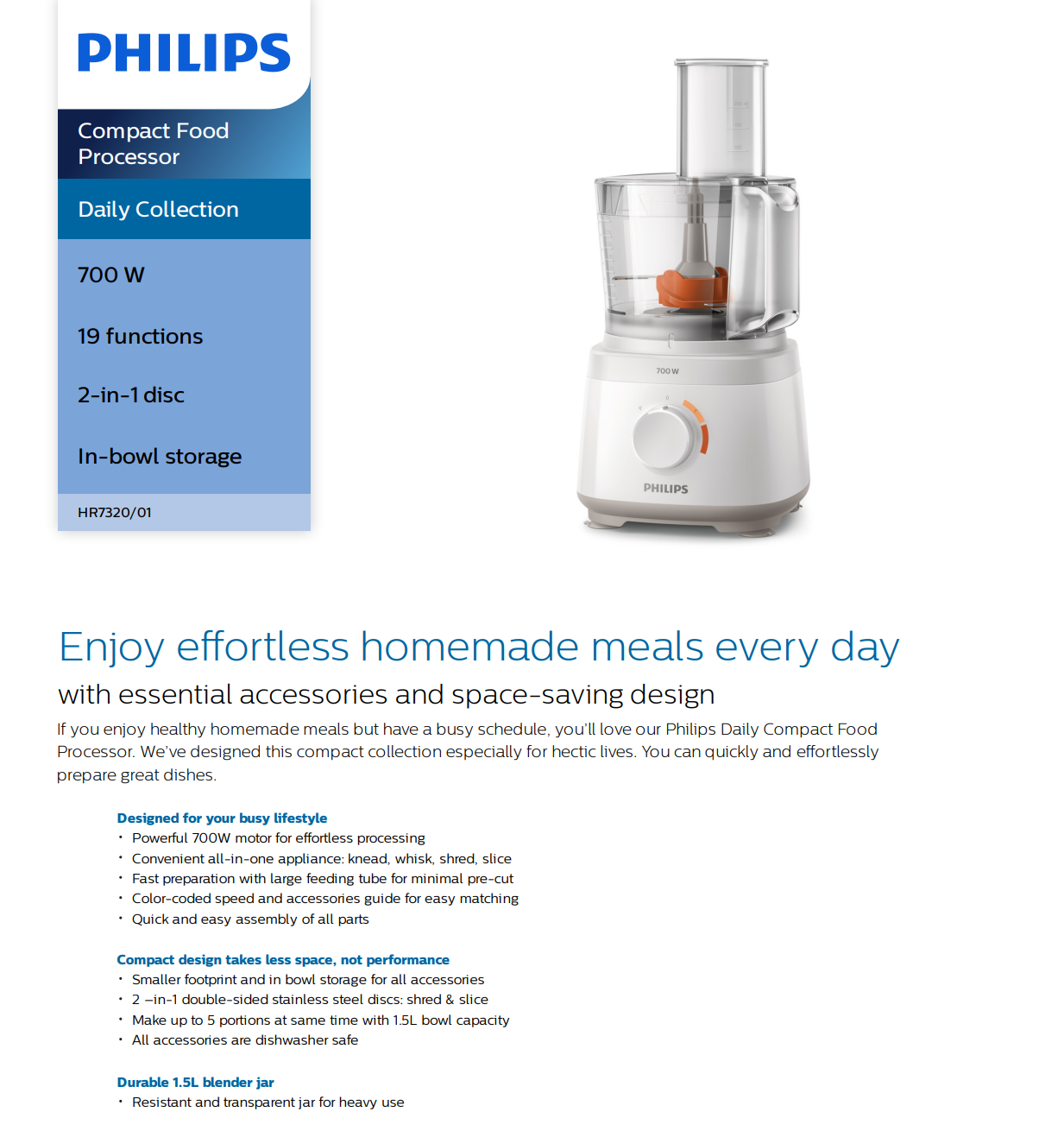 Philips Hr7320 01 Daily Collection Compact Food Processor Lazada
