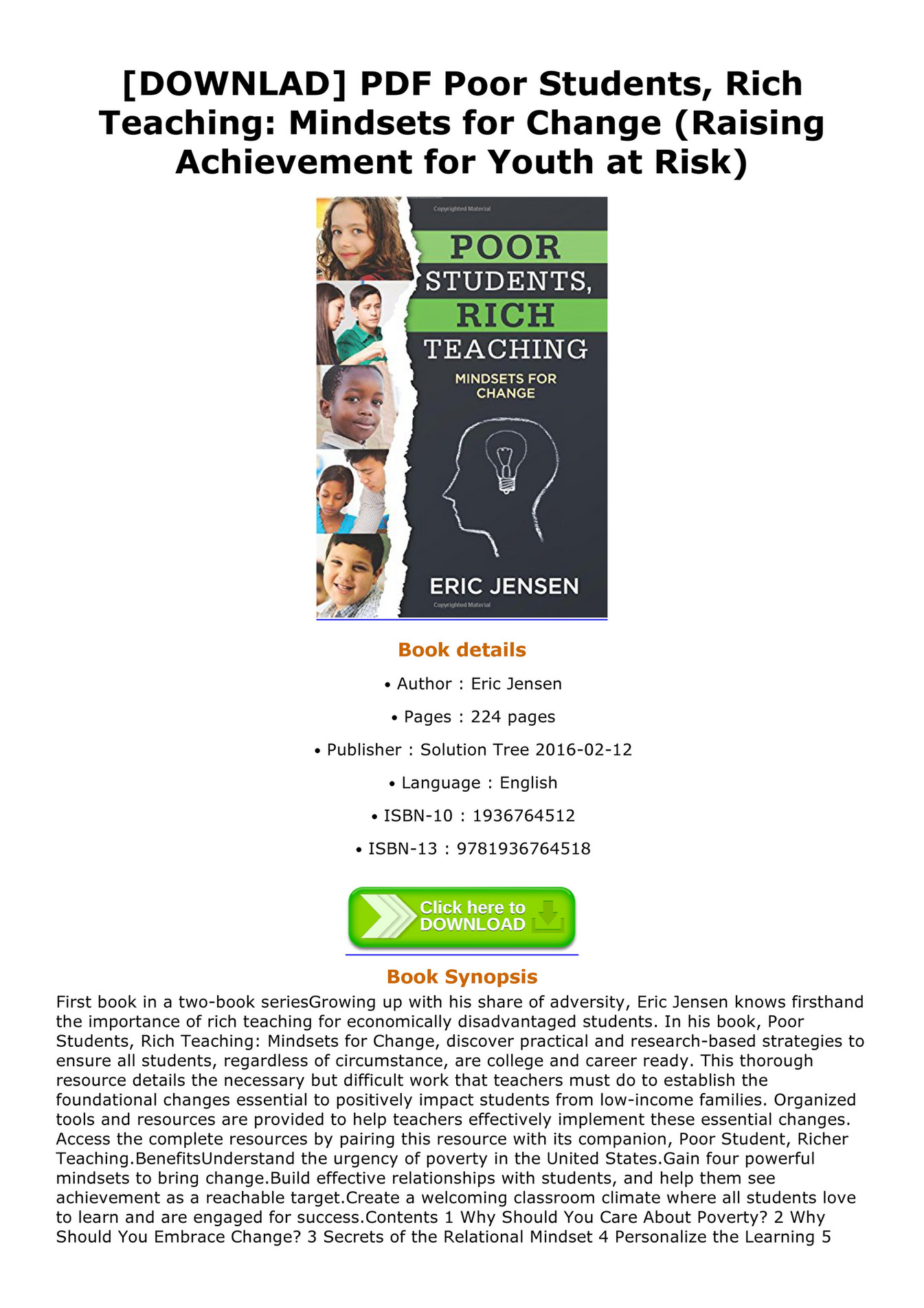 Read Book Poor Students Rich Teaching Mindsets For Change