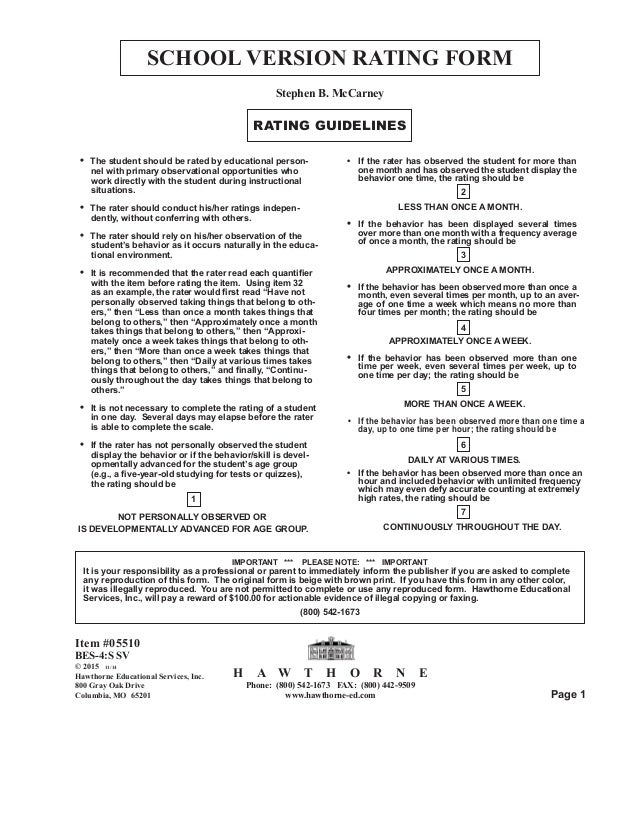 Behavior Evaluation Scale Fourth Edition