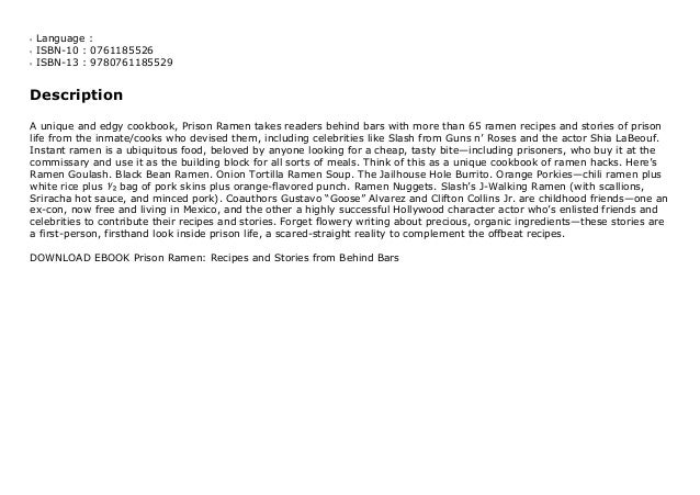 Book Prison Ramen Recipes And Stories From Behind Bars Pdf Ebook